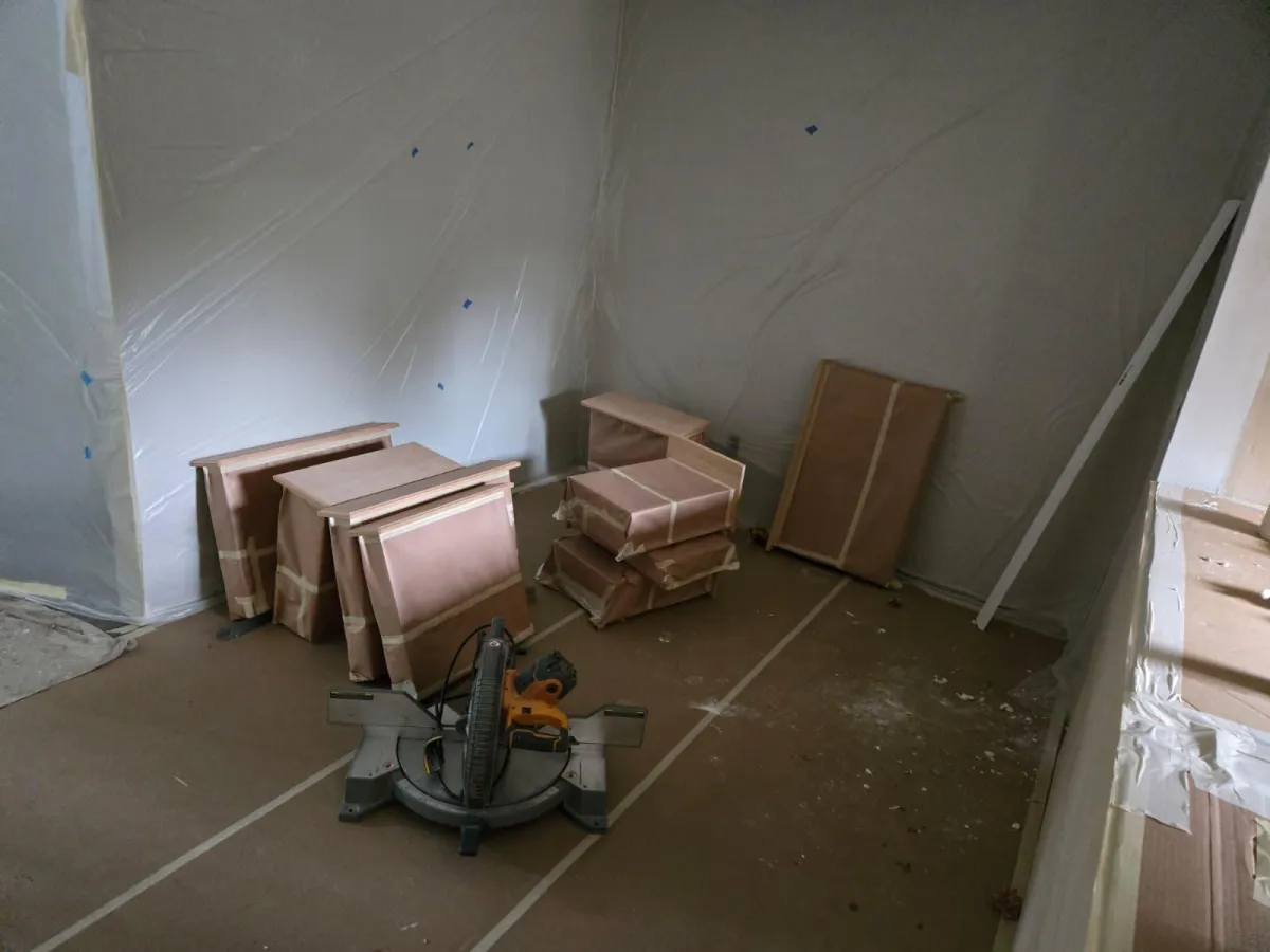 Walls, ceilings, and work areas are properly masked to keep everything clean and organized