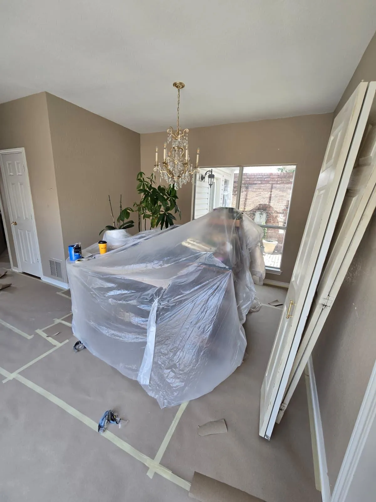 Furniture is moved, covered, and protected, then placed back when the job is complete